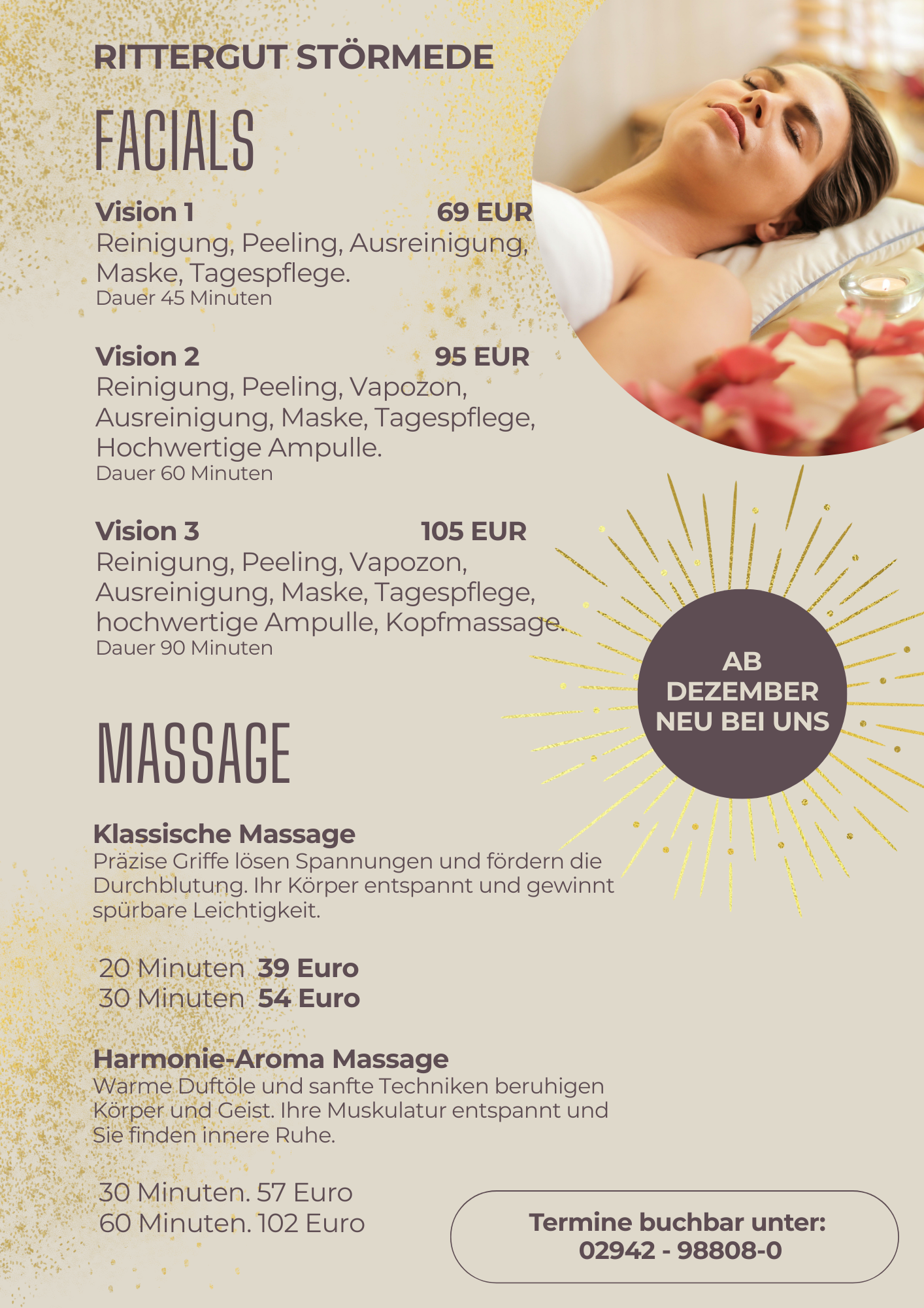 Wellness-Anwendungen 17.12.2025 Gönnen Sie sich eine Auszeit vom Alltag. Unsere Wellnessanwendungen vereinen sanfte Behandlungen, wohltuende Düfte und beruhigende Atmosphären – für… weiterlesen